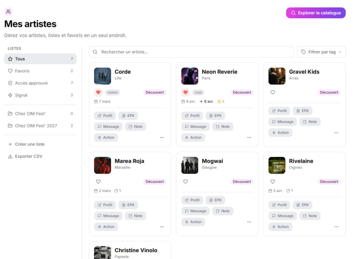 Suivre les artistes et projets que vous avez repérés ou déjà accompagnés, sans multiplier les tableaux et les carnets d’adresses.